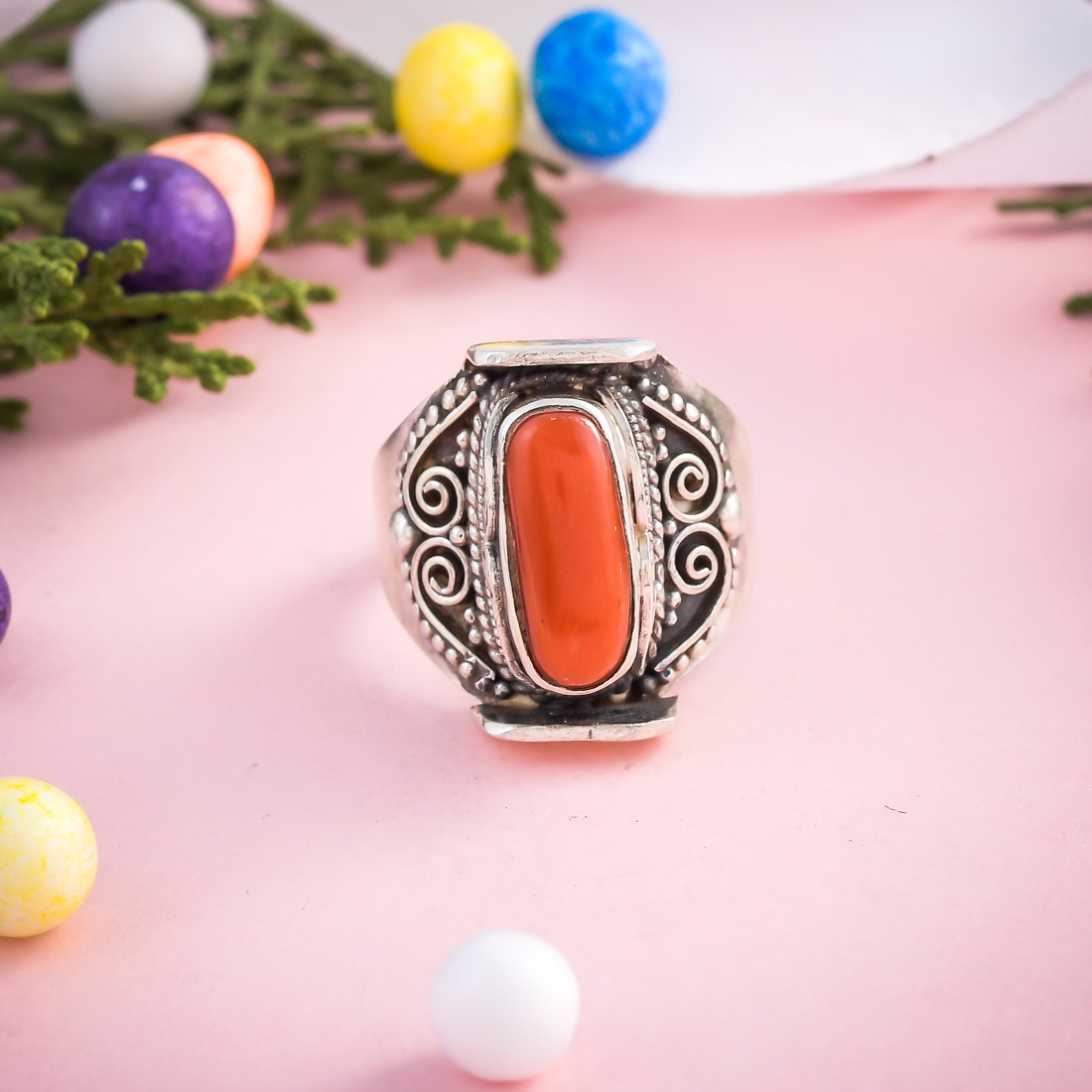 925 Sterling Silver Coral Ring