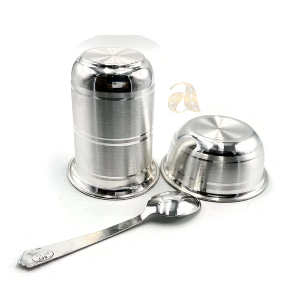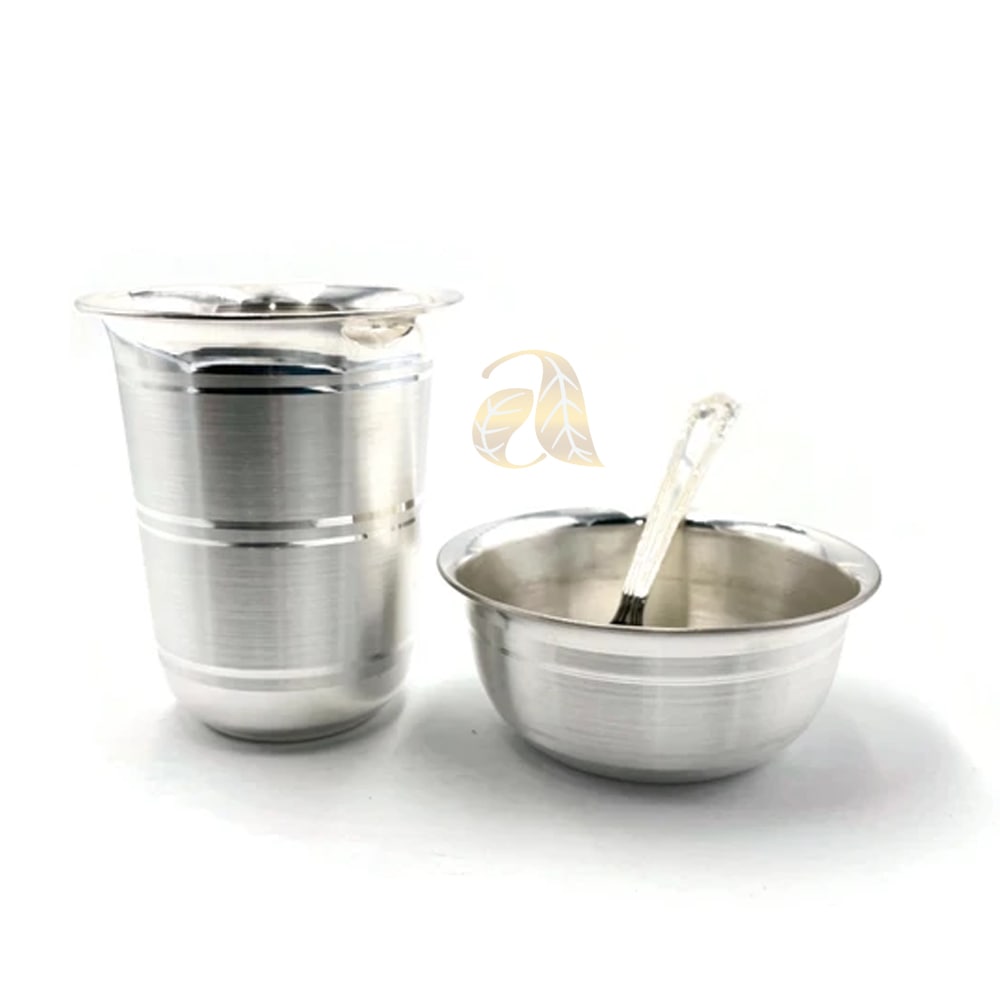 999 Pure Silver Glass, Bowl & spoon set consist of Silver Glass , Bowl of ~99.9% Silver Purity and Sliver spoon of 92.5% Silver Purity. Made with Excellent Silver hardness and superior quality