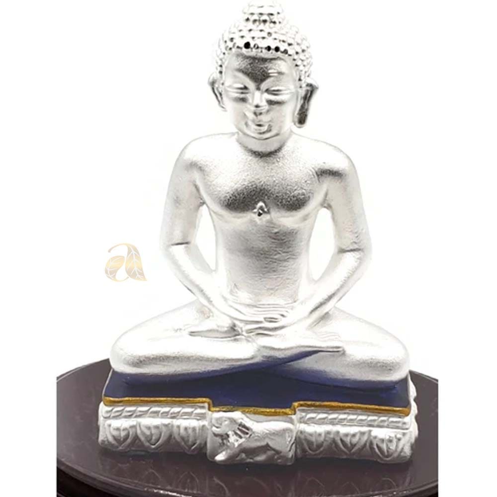 999 Pure Silver LORD MAHAVIR JI Silver idol is made of 99.9% pure silver and comes with cherry colored Oval wood stand and hard acrylic NON-Removable Oval shape cover. Reference Idols were first crafted in clay by Skilled and Reputed Sculptors and then converted into Silver Form, conforms to Vastu and Indian religious traditions. Made with Excellent Silver hardness and superior quality.