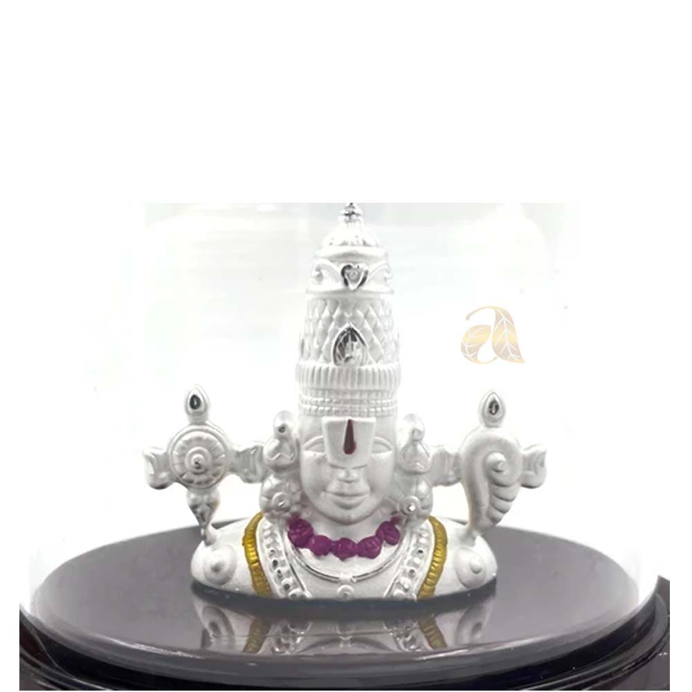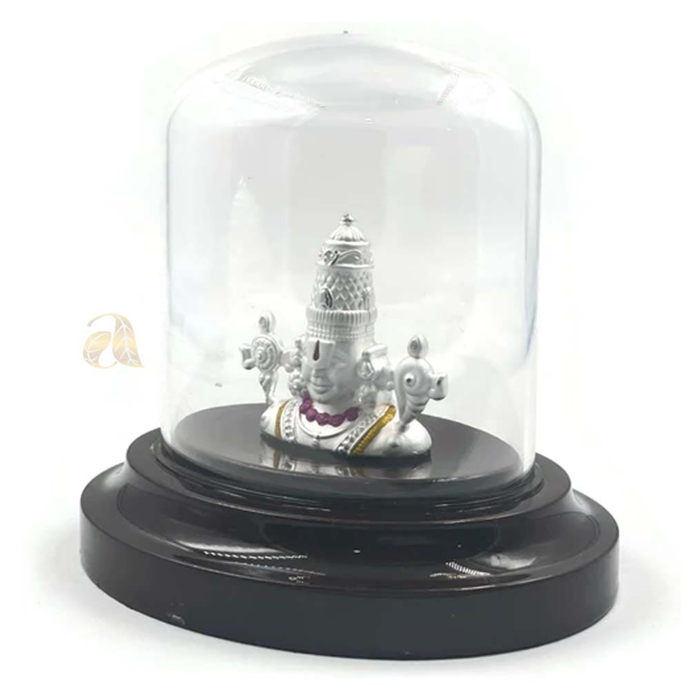 999 Pure Silver TIRUPATHI BALAJI / VENKETESWARA Silver idol is made of 99.9% pure silver and comes with cherry colored Oval wood stand and hard acrylic NON-Removable Oval cover. Reference Idols were first crafted in clay by Skilled and Reputed Sculptors and then converted into Silver Form, conforms to Vastu and Indian religious traditions. Made with Excellent Silver hardness and superior quality.