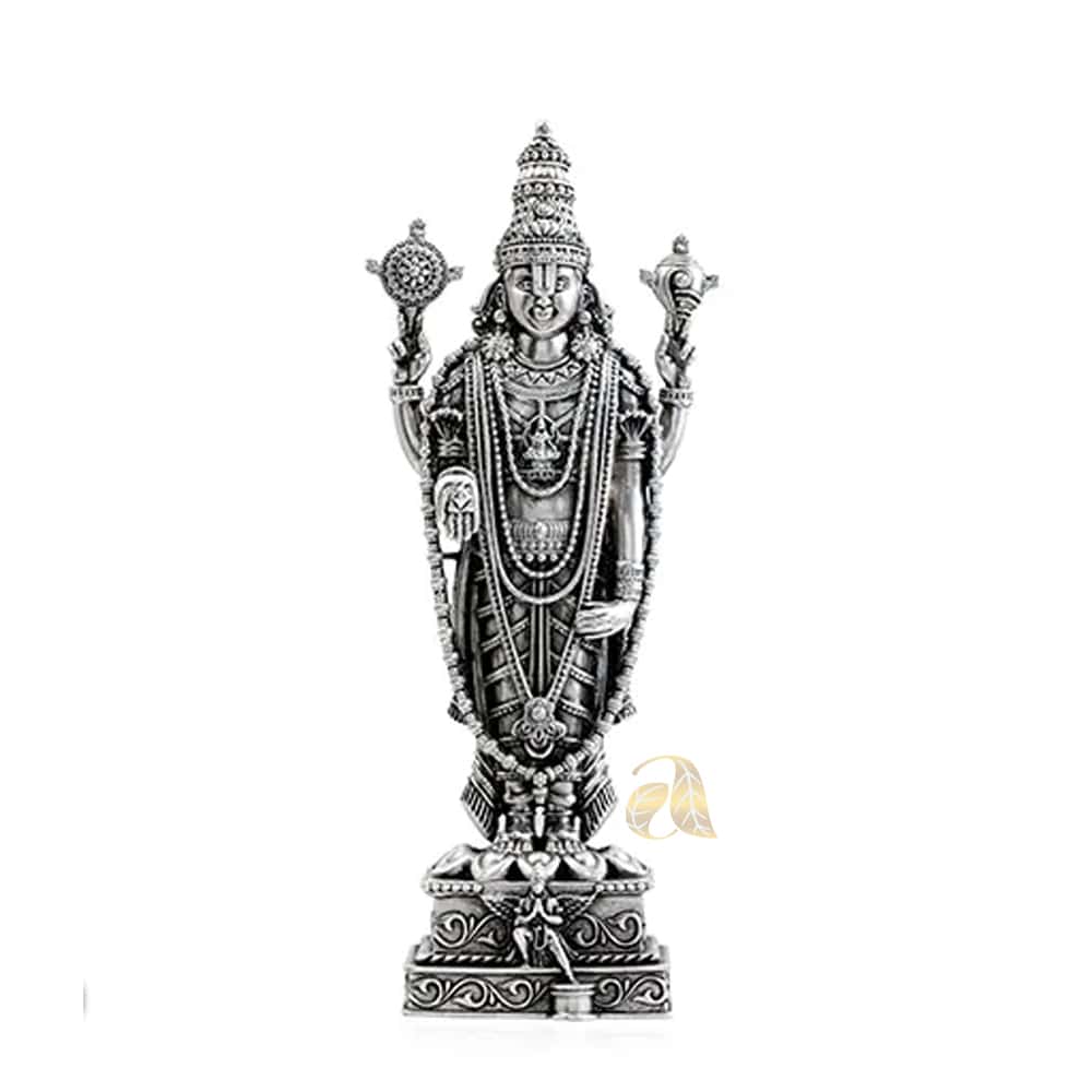 Inspired by Lord Venkateswara Idol are delicately fabricated in silver and Antique polished embellished the Heritage Hindu Puja Celebrations.