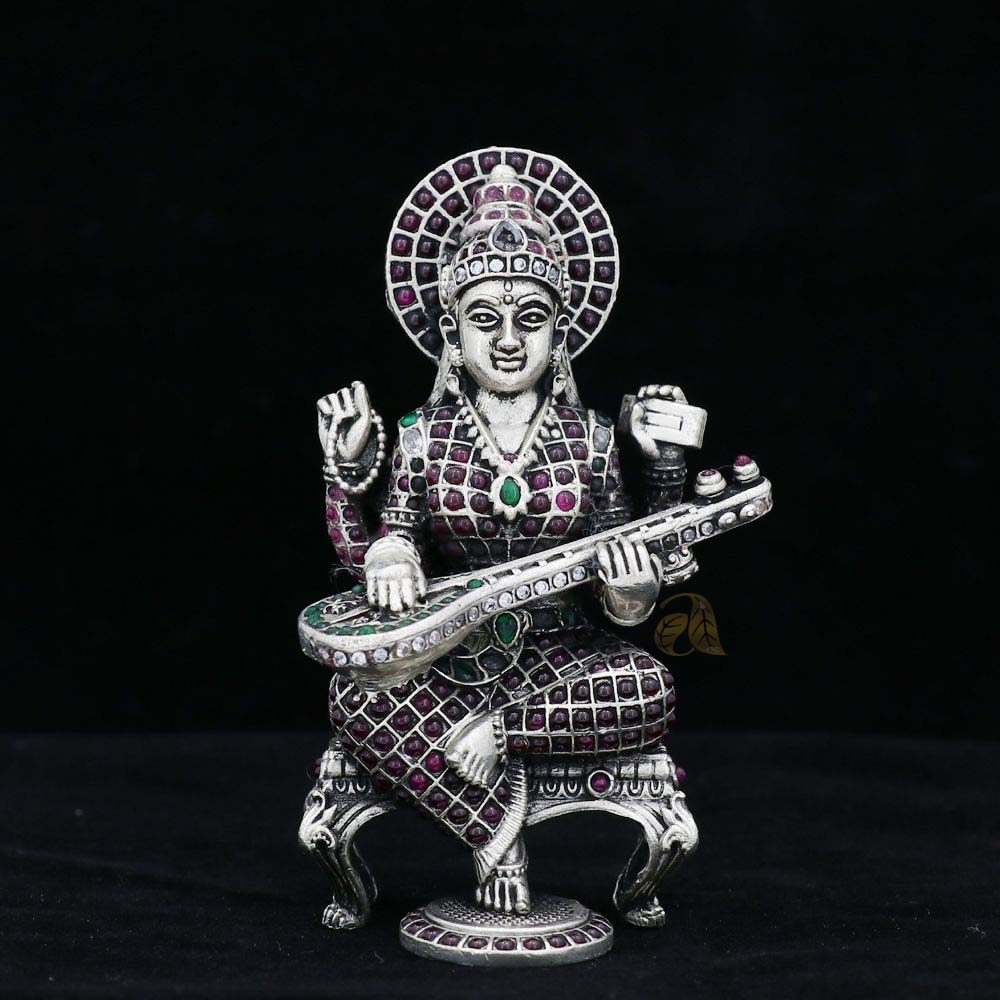 Goddess Saraswati is well known for intelligence and wisdom. Many times in life the problems we face are due to a lack of wisdom or intelligence. People worship Goddess Saraswati on different occasions of the year to seek wisdom. When wisdom increases, life will be smooth, problems will be solved and decisions can be proper. Buy Saraswati Silver Idol from Silver Asopalavjewellers a famous place to buy the best quality silver idols. We have the finest artistry in place, idols crafted with utmost reverence. Goddess Saraswati silver idol can bring the vibes of wisdom that fills your life with goodness and nullify the evil lies with truth.